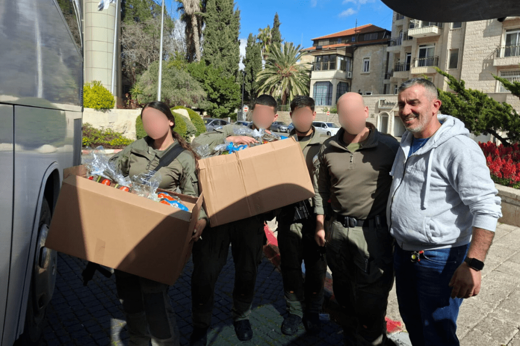 Morris was on night duty at the Damascus Gate with his unit, and we brought them pizza. We know how that sounds. But we have learned that love rarely announces itself with grand gestures. It shows up at night with something warm in its hands. These young men stand at one of the most contested intersections on earth, in the dark, and we felt God say: go. So we went. We also sponsored 30 Purim gift packages for families of another IDF unit, 40 NIS each. Purim is the feast of a people who were marked for destruction and survived, and for families waiting at home while their sons and husbands are deployed, a gift in that season carries a message that words struggle to hold: God has not looked away from you. Neither have we.