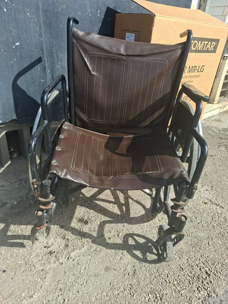 That same day, Achsan came to receive her wheelchair. We also saw her old one. It was broken and unsafe. Seeing the difference between the two was hard. When she sat in the new wheelchair, her reaction said everything, she was overjoyed with her new wheelchair.